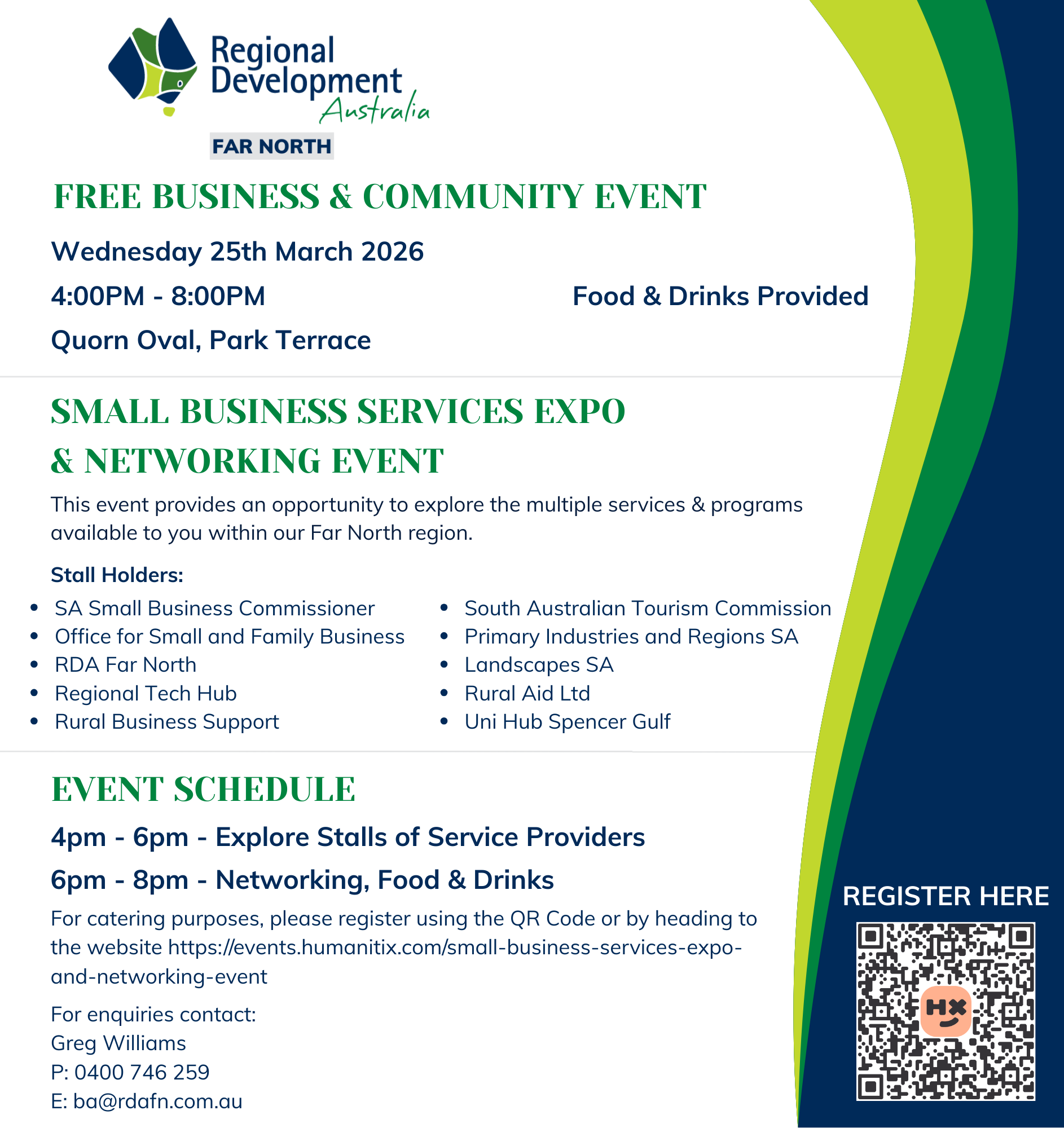 Come and join us for this free Expo & Networking Event in Quorn for both community members and businesses! This event will provide an opportunity to explore the multiple services and programs available to you within our Far North region. |
